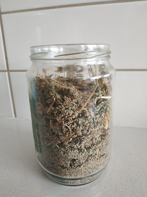 Or, you can do like I do and just collect the seed heads, let them dry, take out the stems and leaves (if you want, not so imperative) and then grind them up like that. You can then grind it up as is, and you'll have flour together with ground greens, which isn't necessarily something you'd want to be using for a sweet dish, but they work well for savory pancakes, for example, or any other recipe where using greens and grains together taste good. (I haven't tried it to make homemade pasta, but that's on my list.)