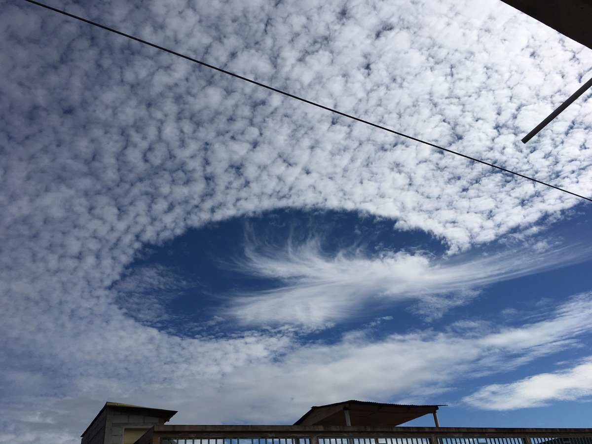 These stunning formations are also sometimes called  hole punch clouds because it literally looks as if something punched the sky with cloud puffs dissipating from a large elliptical gap..."