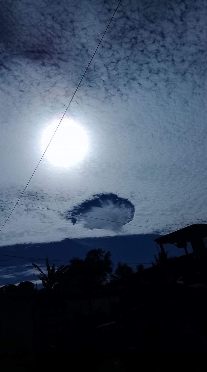 A cavum, also known as a fallstreak hole, hole punch cloud, punch hole cloud, or skypunch was observed over Brunei International Airport on the island of Borneo around 10am on June 13.
