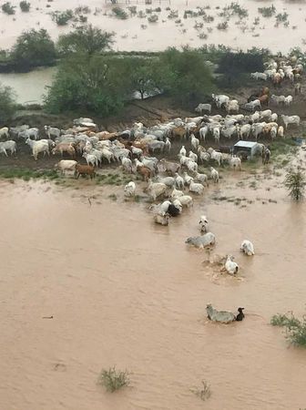Pictures posted on social media showed scores of cattle trapped on patches of high ground surrounded by water, or dead and dying in the mud.